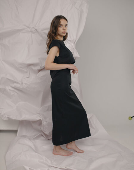 Embrace refined sophistication with our Black Linen Dress, a versatile piece designed for the modern woman.