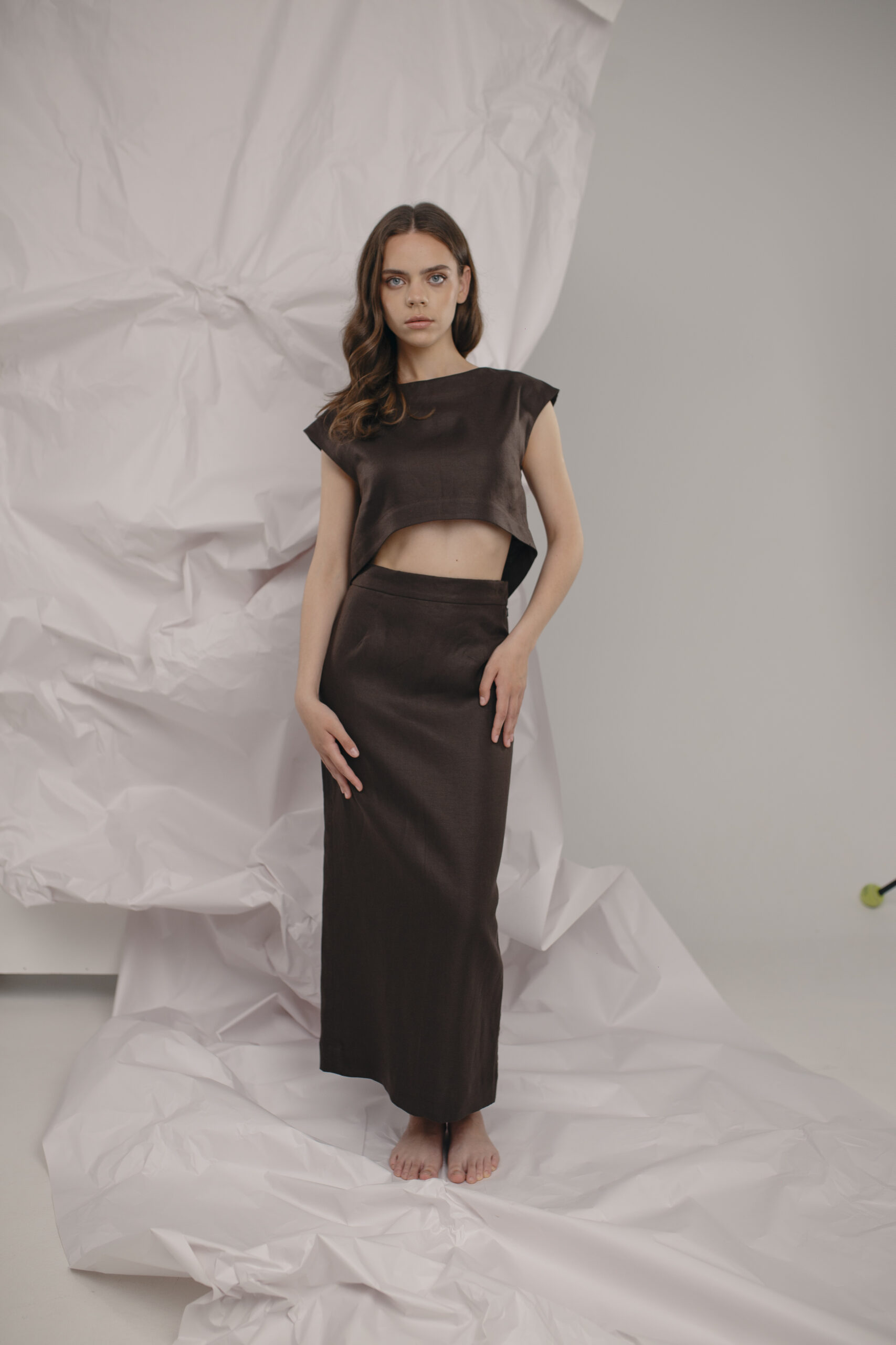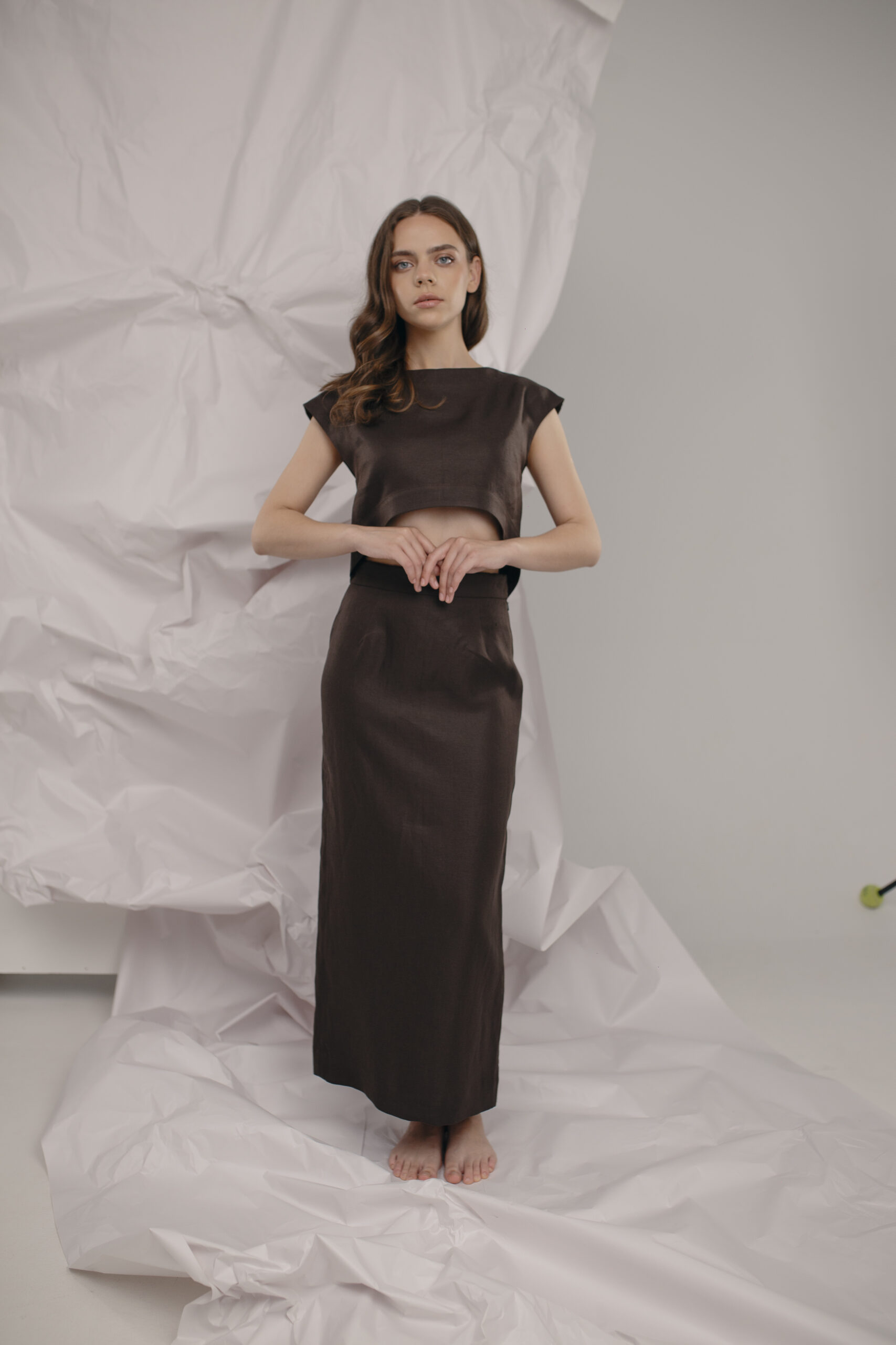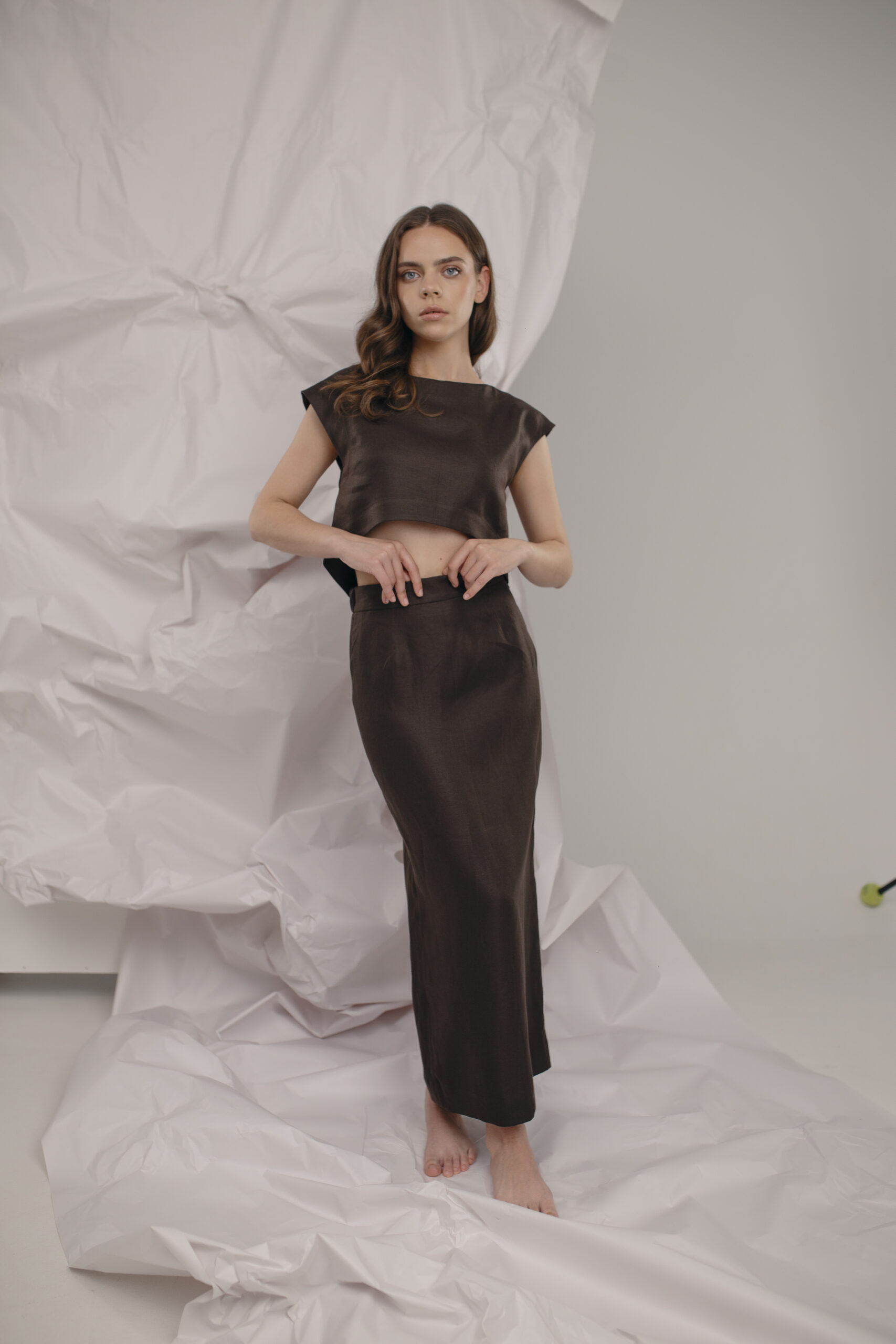The soft, breathable fabric ensures comfort, making it perfect for warm days or layering in cooler weather. Pair it with matching linen bottoms or high-waisted trousers for an effortlessly chic look.